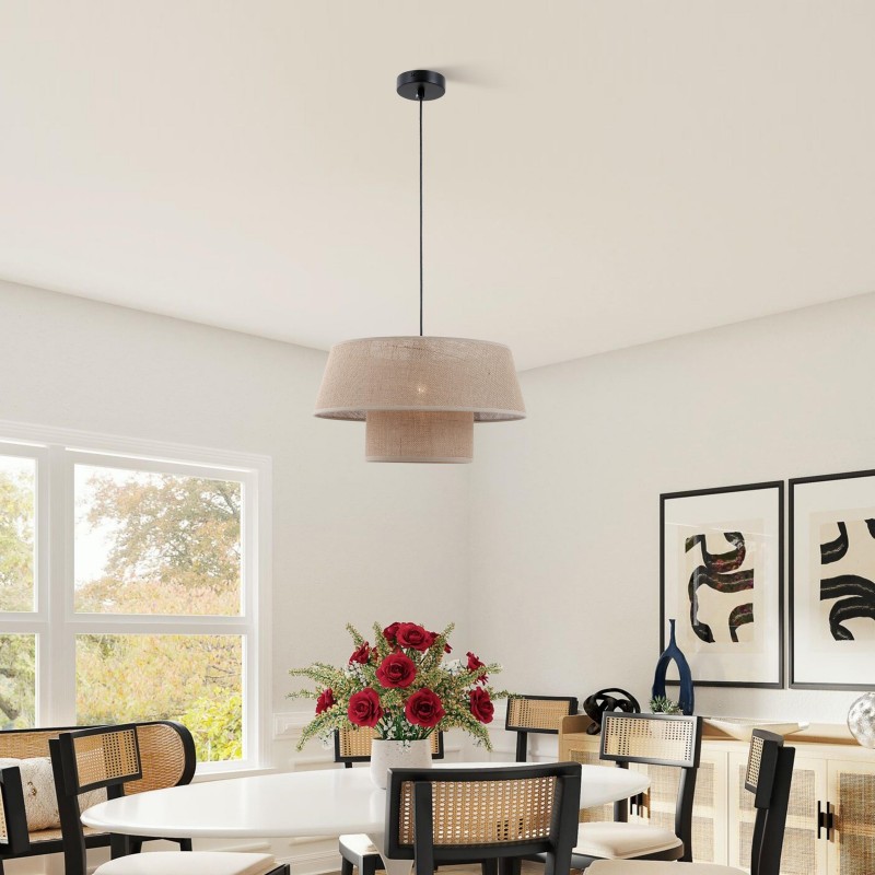 Dvouvrstvá konopná kuchyňská závěsná lampa, nedávno představená čínským výrobcem Strong Lighting, přináší vintage a útulnou atmosféru do interiéru. Flexibilní černá šňůra v délce 1 m umožňuje libovolně nastavit výšku lampy a použít ji jako závěsnou lampu nebo polozapuštěné svítidlo. Můžete jej zavěsit nad jídelní stůl, umístit do rohu obývacího pokoje nebo dokonce zavěsit v ložnici. Nejedná se o funkční výrobek, ale o součást dekorace ve vašem domě. Dvoupatrové konopné kuchyňské závěsné svítidlo má dvě různé velikosti, další menší o průměru 300 mm.